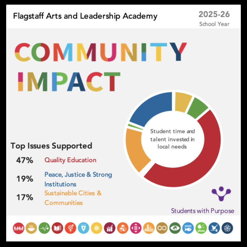 Flagstaff Arts & Leadership Academy encourages individual creativity through rigorous academic and artistic programs while providing opportunities for the cultivation of the student as whole being and valuing leadership and interpersonal skills through experiential learning and service to others.