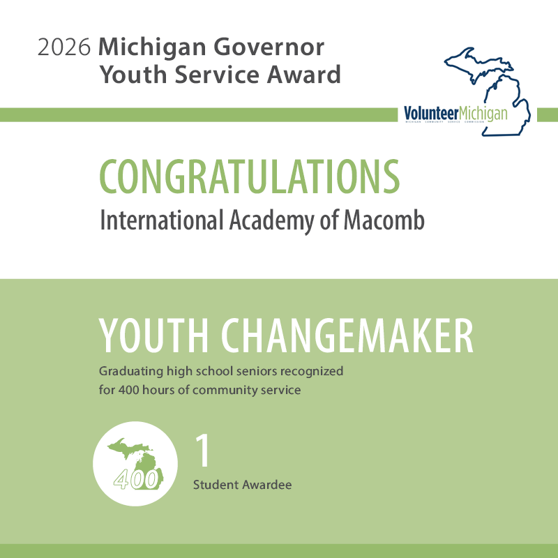 The International Academy of Macomb is a public high school in Macomb County, Michigan located in the Chippewa Valley 9th Grade Center in Clinton Township. The school opened in the spring of 2008 and is an International Baccalaureate school as of early 2010.