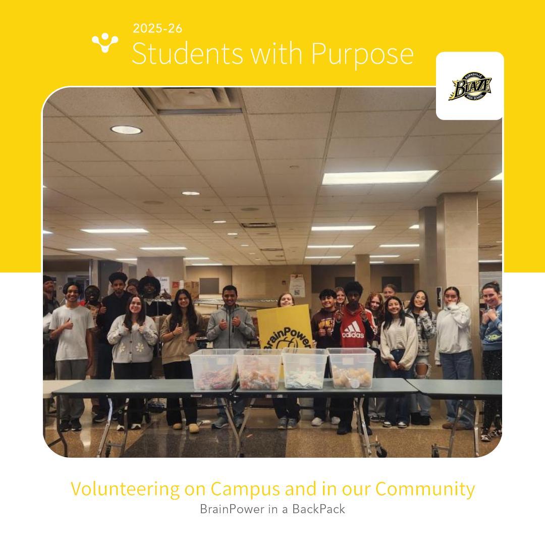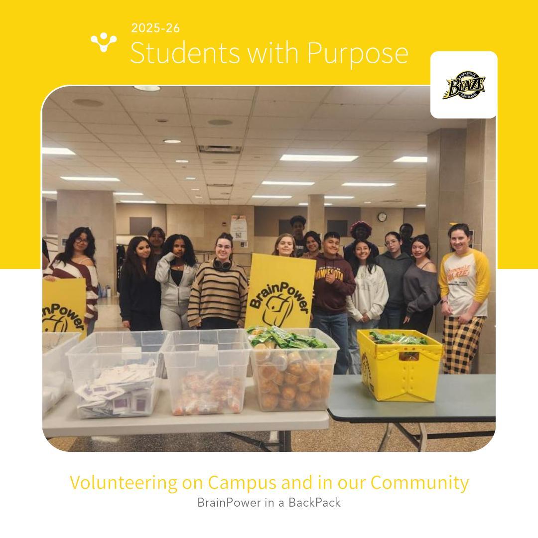 BrainPower is our weekly food pack program providing food assistance to preschool, elementary, and middle schools in ISD 191. We pack every Thursday after school in the main cafeteria.