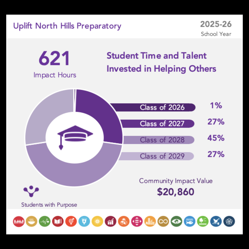 Uplift North Hills Preparatory is a free, public, college-preparatory, charter school serving the Irving, Las Colinas and the surrounding area in Texas.