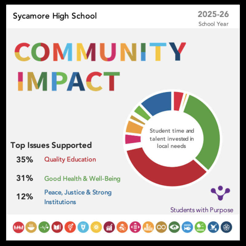 Sycamore High School (SHS) is a four-year public high school in the north-east suburbs of Cincinnati, Ohio. It is the only high school in the Sycamore Community School District. The current building was built in 1974 in a modern architectural style employing the progressive and experimental open classroom concept wherein no permanent walls separated the classrooms originally. It was built to accommodate 2000 students and has since been expanded. More walls have been added as the school has been renovated.