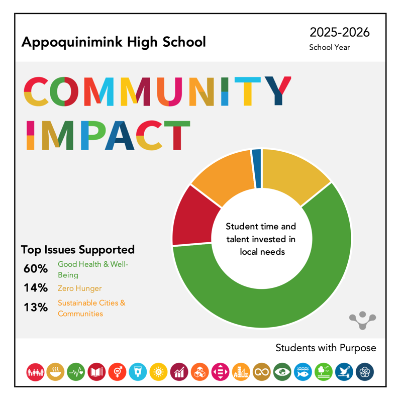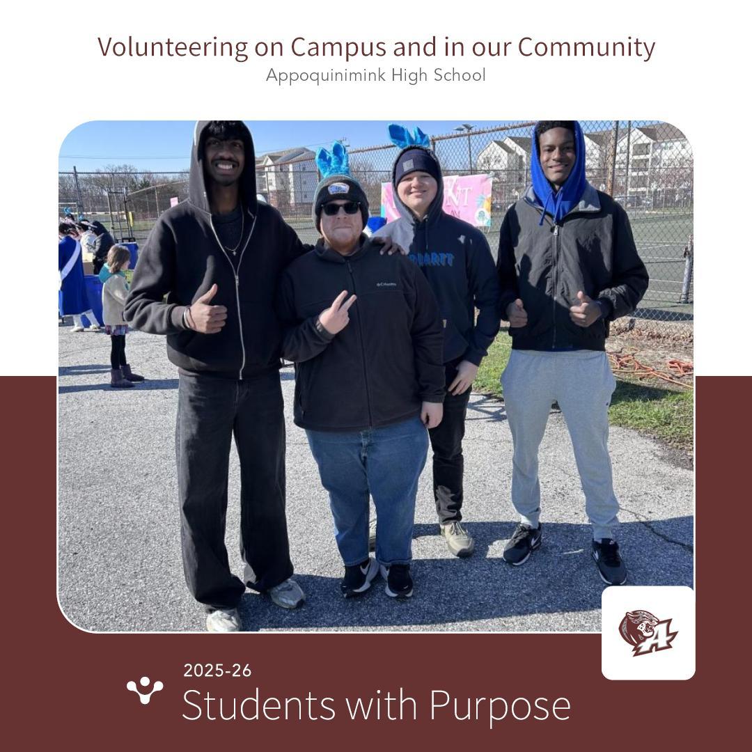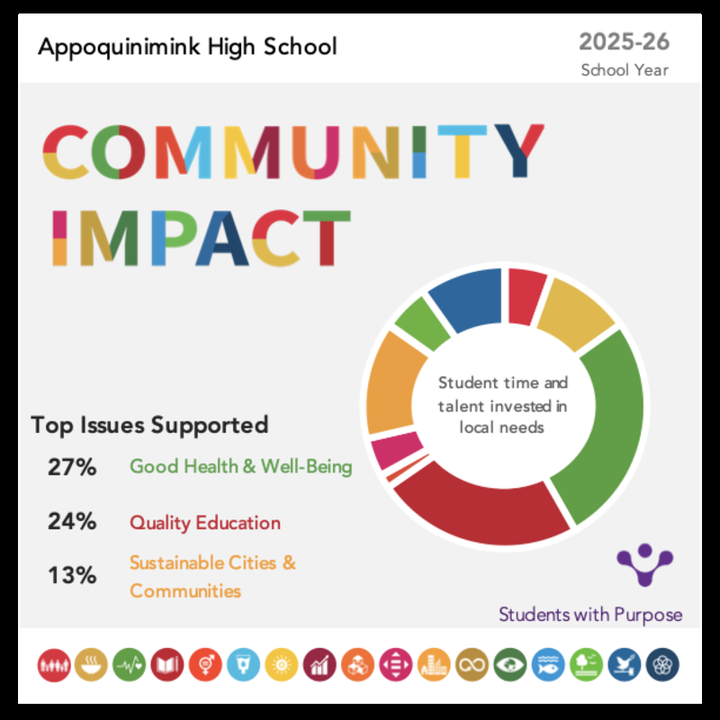 Appoquinimink High School is a school committed to fostering personal growth through positive character development and the use of state of the art tools and practices to enable students to make a positive impact on today’s global society. Our Core Values are: Achievement, Honor, and Service. The AHS Vision Statement is: Developing critical thinkers and effective communicators for a global society.