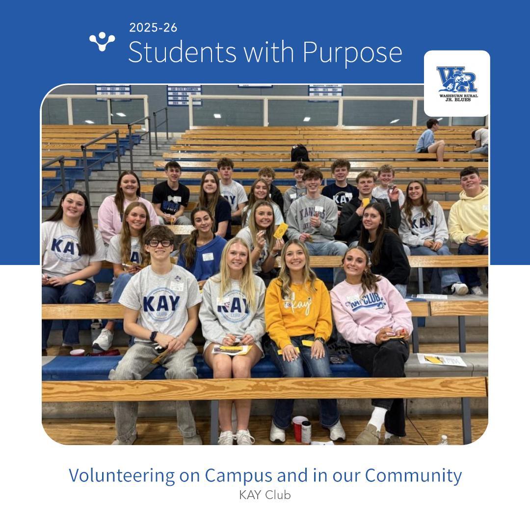 The Kansas Association for Youth (KAY) is a character-building, leadership training, service program directed by the Kansas State High School Activities Association. This national acclaimed organization provides students an opportunity to learn to assume their citizenship responsibilities and to enrich their personalities through well-organized programs, project, and parties. Programs educate, inspire and direct members into carefully planned service projects. These projects emphasize four areas of service-school, community, nation, and world.