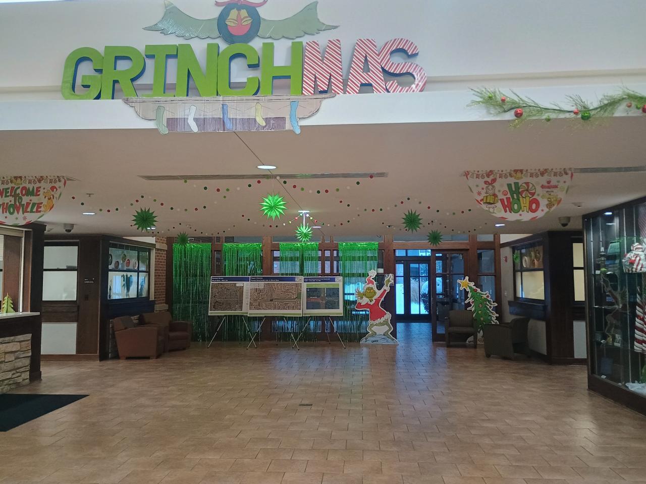 Village Hall Holiday Décor set up