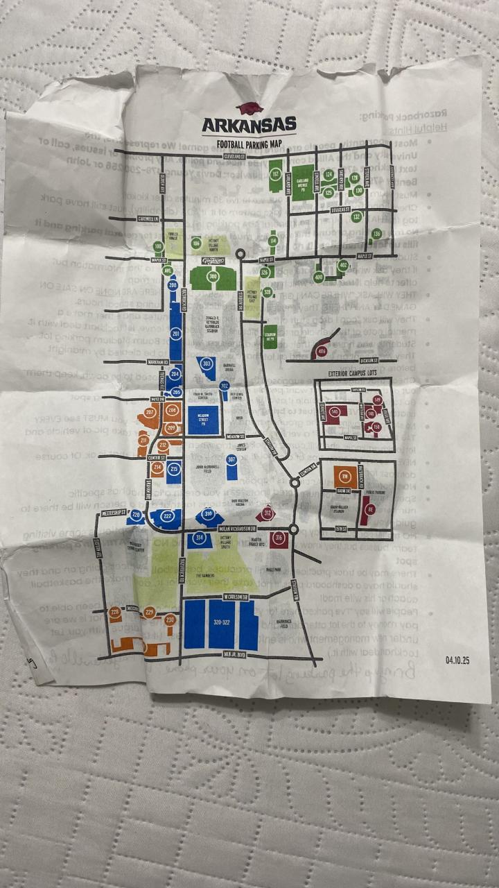 Razorback Parking Time 6 am report time (Thanksgiving Week)