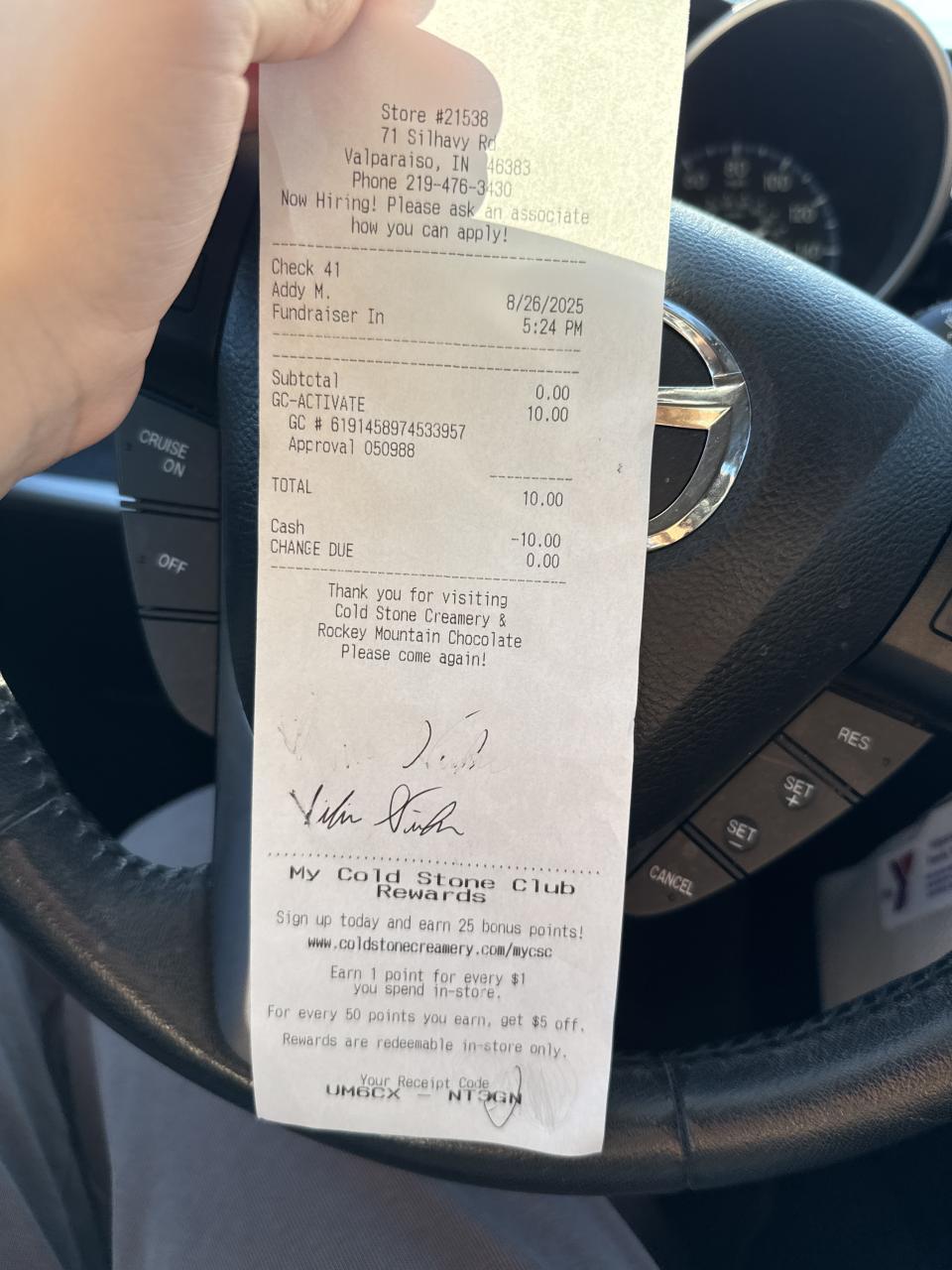 Cold Stone Give Back Night, Receipt Opportunity