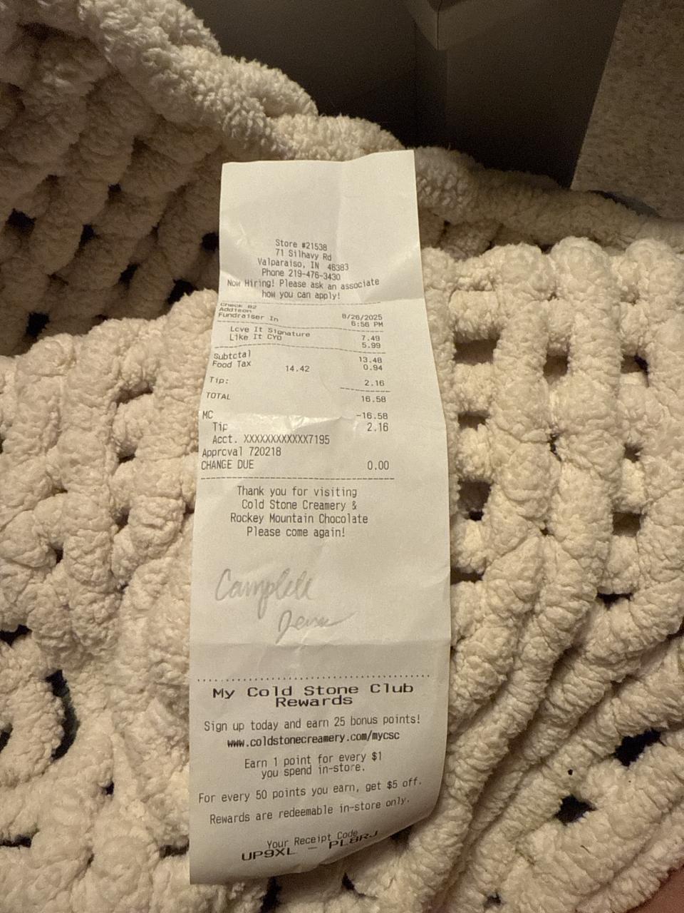 Cold Stone Give Back Night, Receipt Opportunity