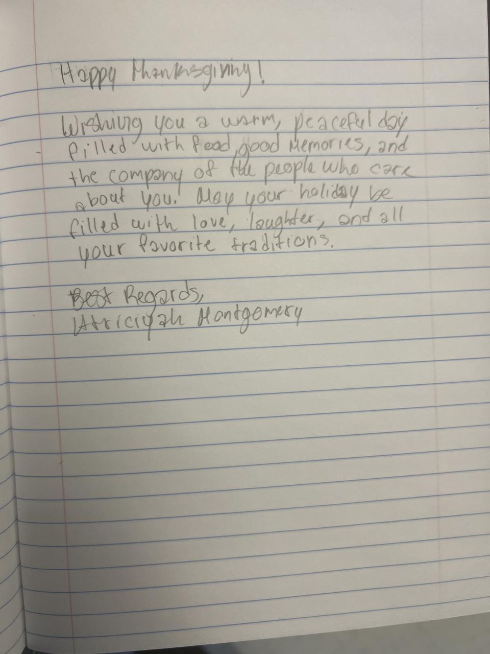 Thanksgiving Letter Writing