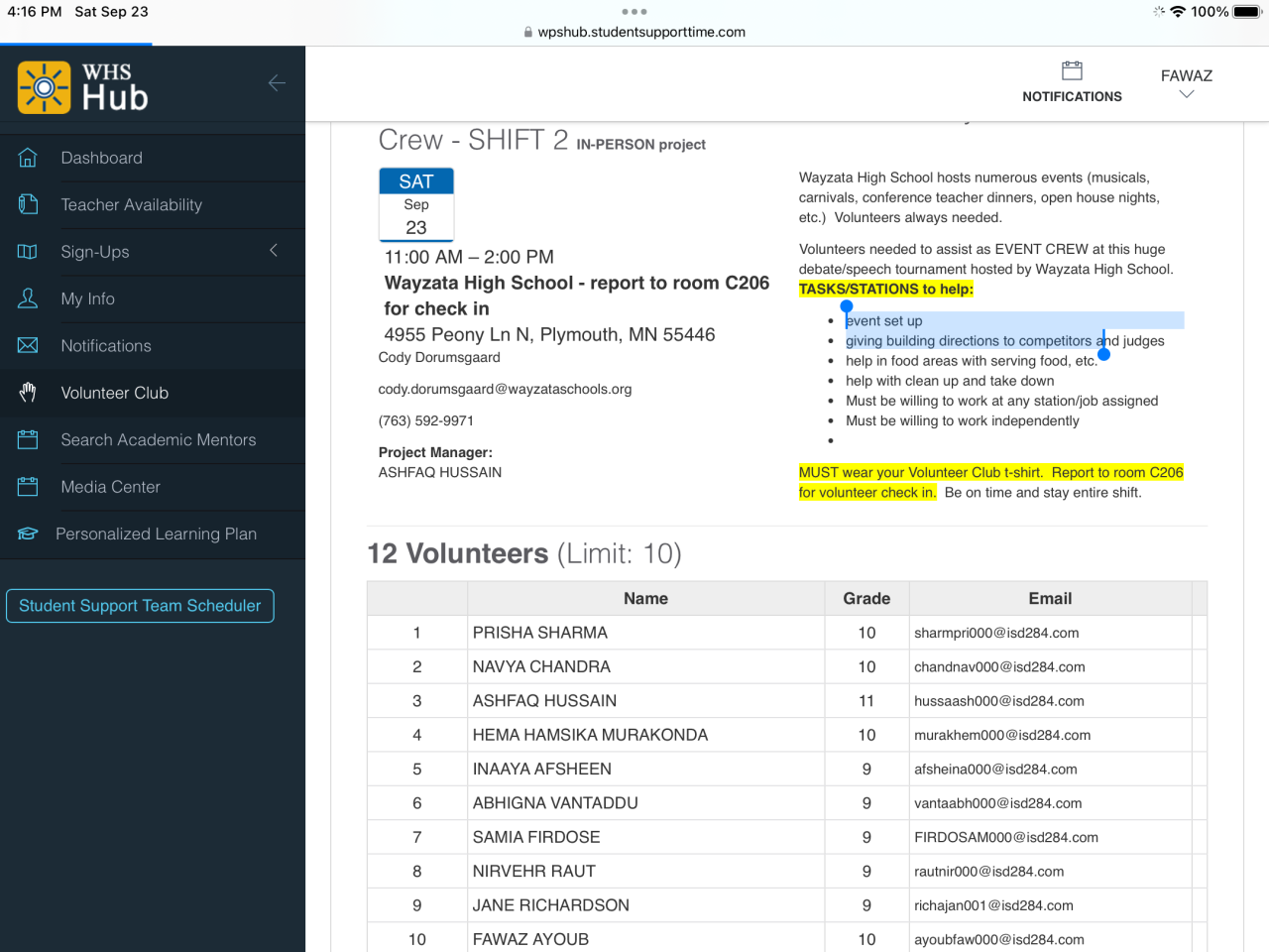 Volunteer Club of Wayzata High School