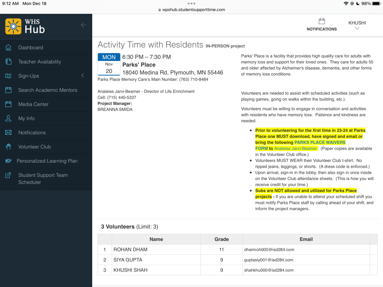 Volunteer Club of Wayzata High School