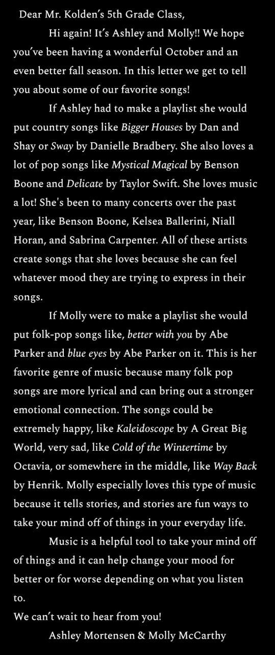 October Pen Pal Letter