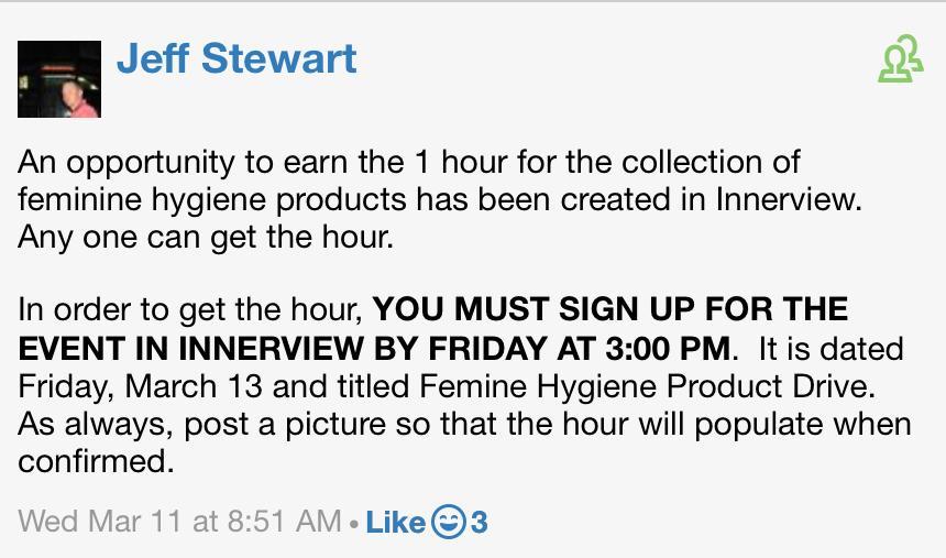 Feminine Hygiene Product Drive