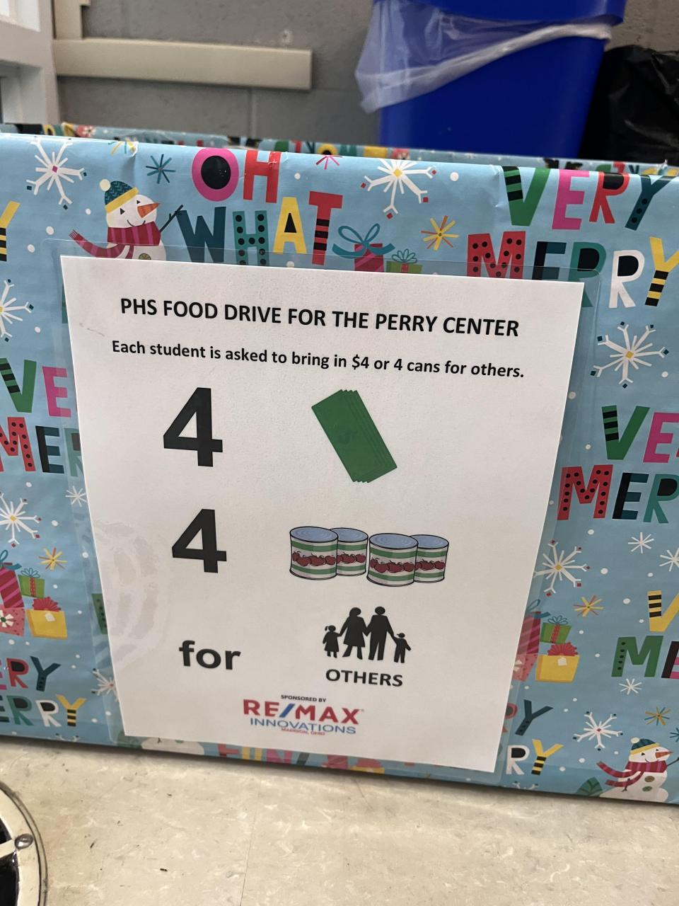 $4 or 4 cans for Holiday Food Drive