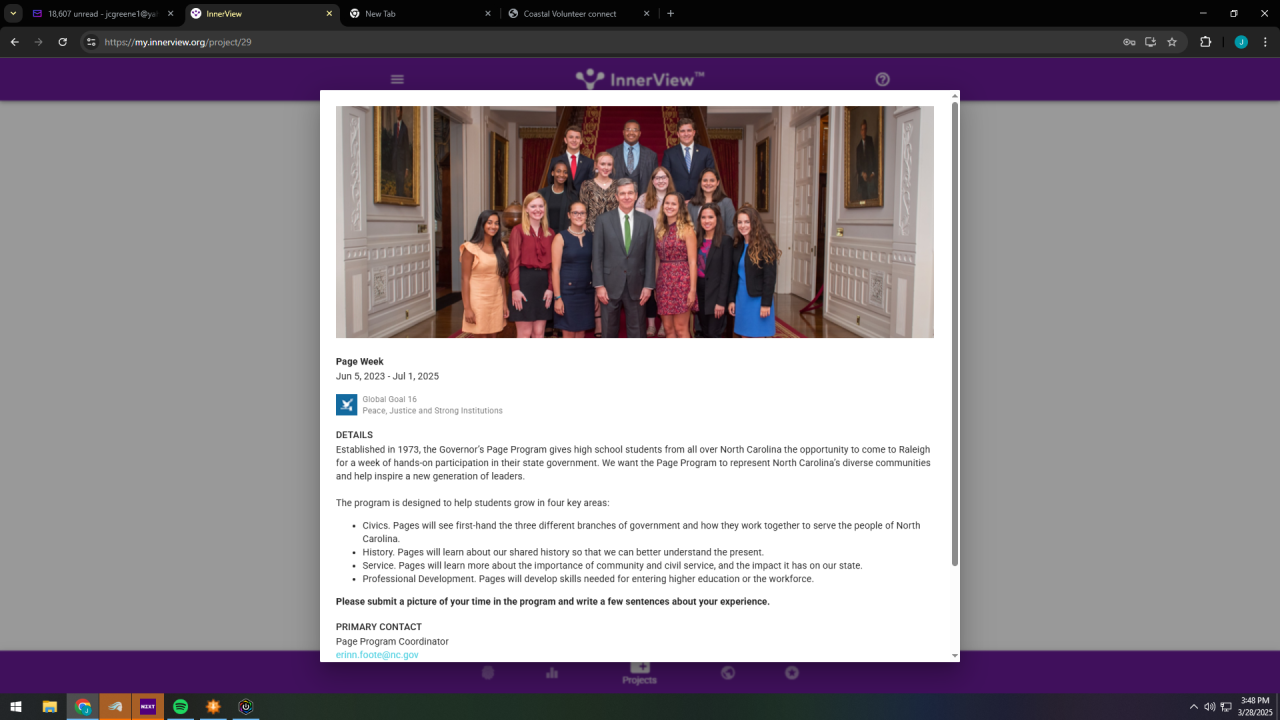 North Carolina Governor's Page Service Project (25 hours)