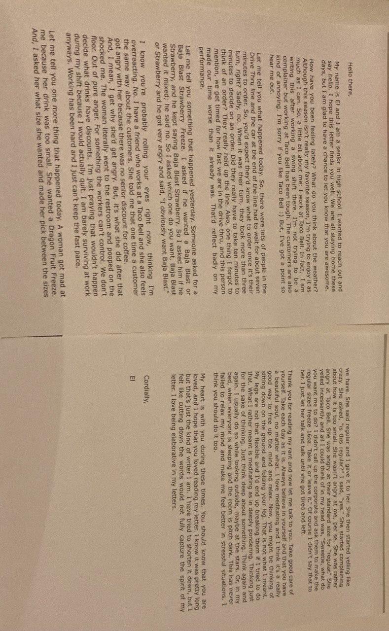Sunshine Letter #1