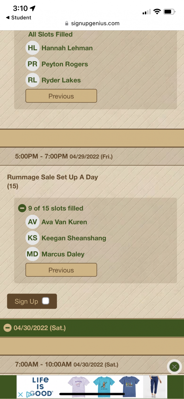 Rummage Sale Collection, Set Up and Sales April 24-30