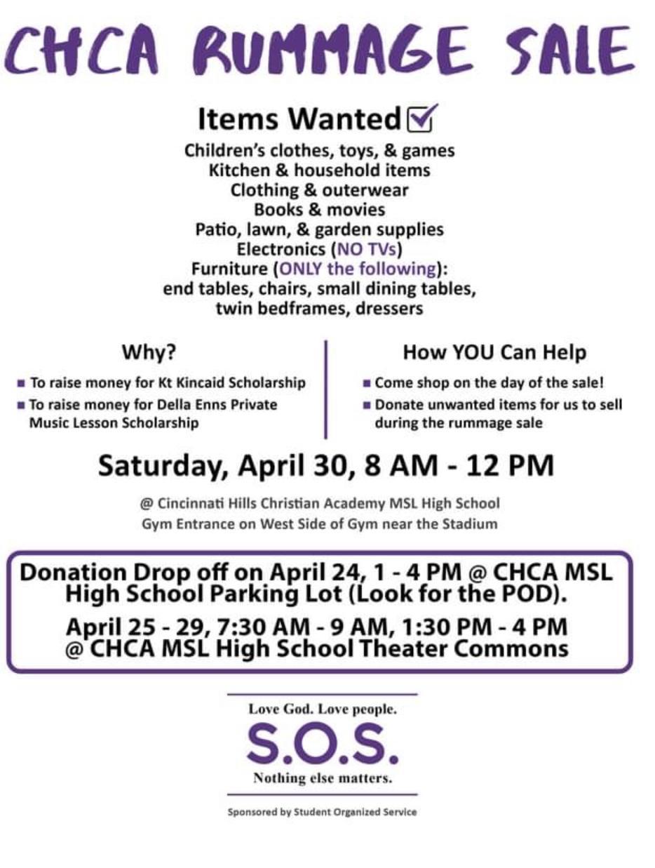 Rummage Sale Collection, Set Up and Sales April 24-30