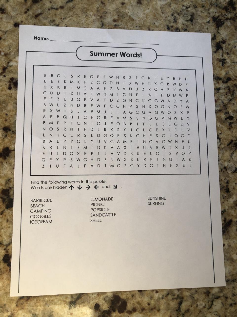 Word Search Cards for Military Care Packages
