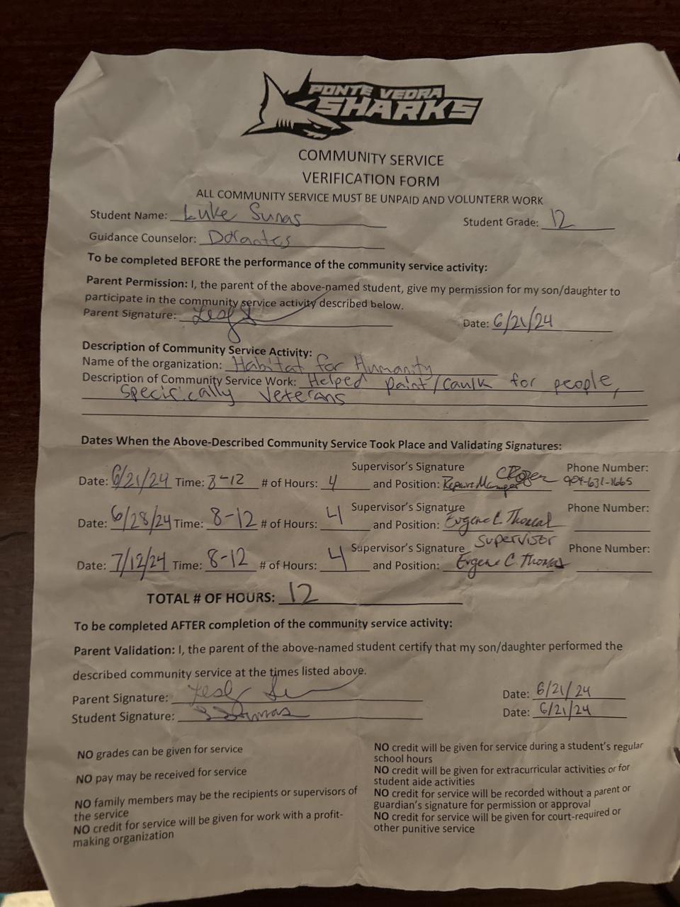 Summer Project Hours