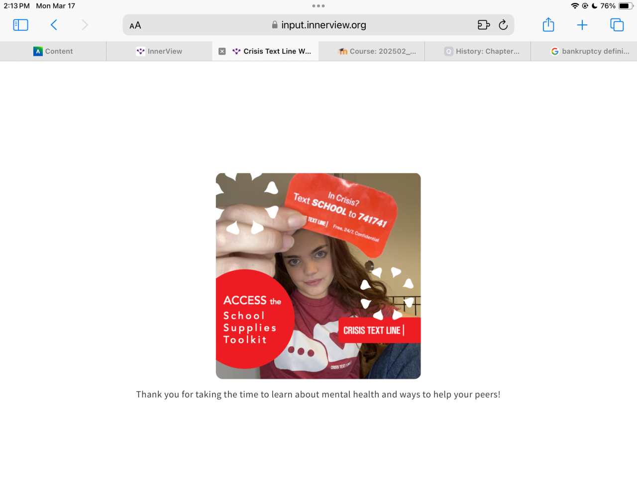 Crisis Text Line : Mental Health Awareness & Resources Video