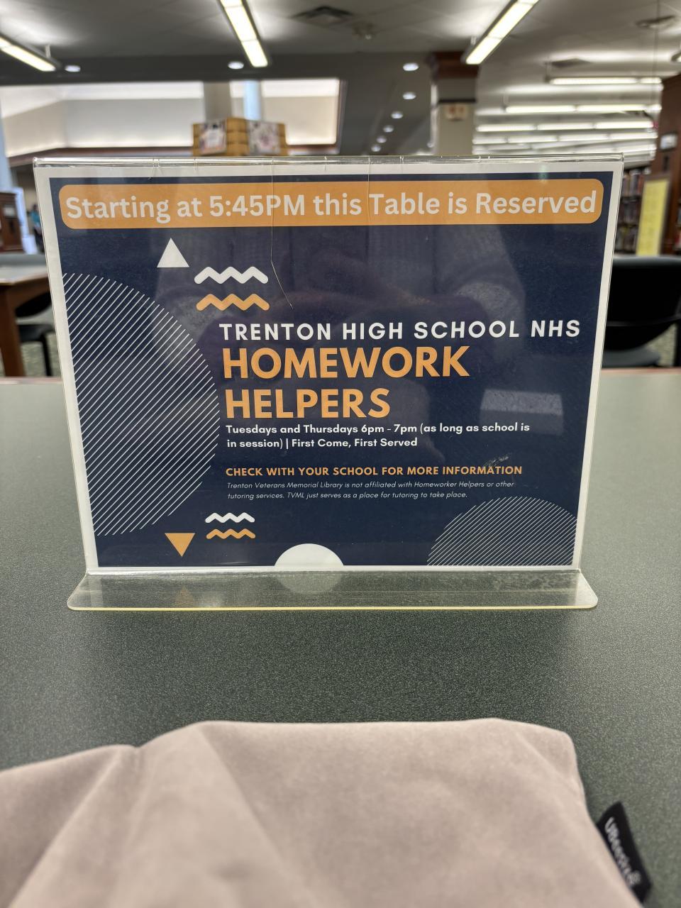 Tutoring at Trenton Veteran's Memorial Library