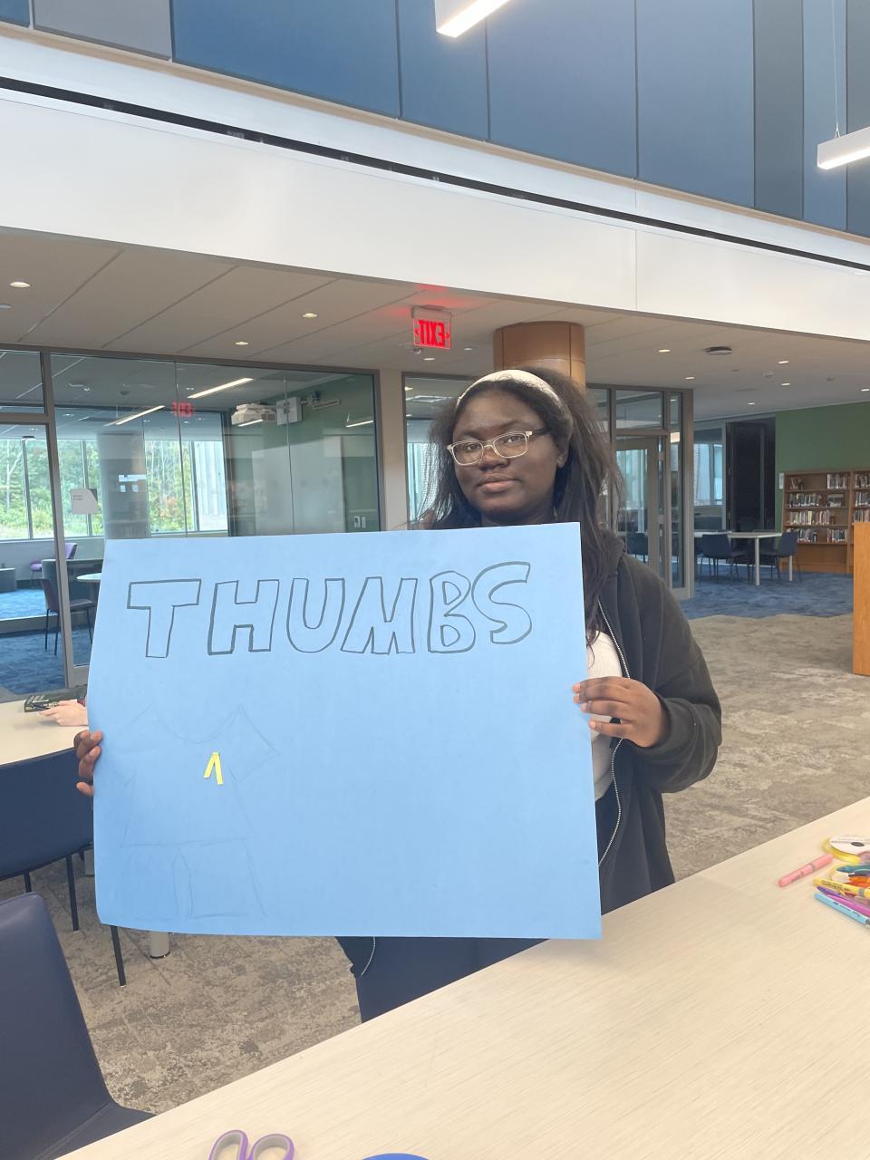 Thumbs Up For Declan - Making Posters During Lunch