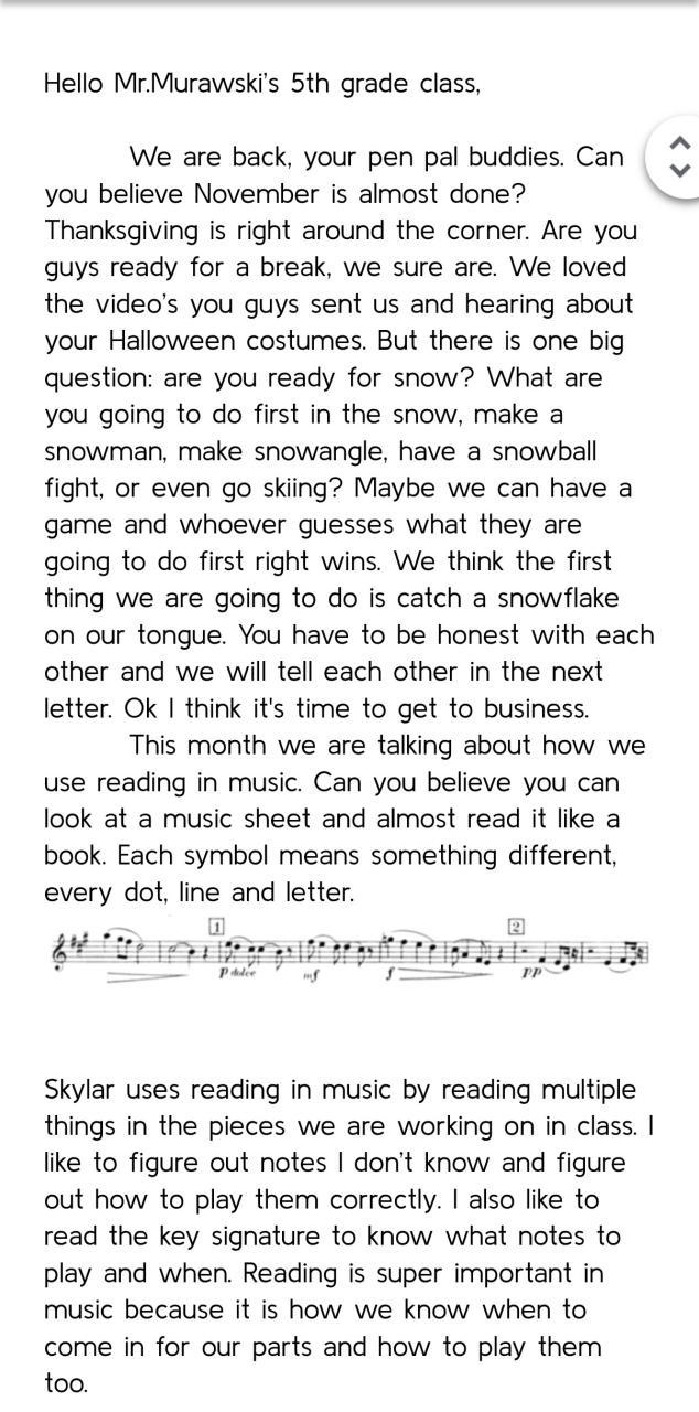 November Pen Pal Letter