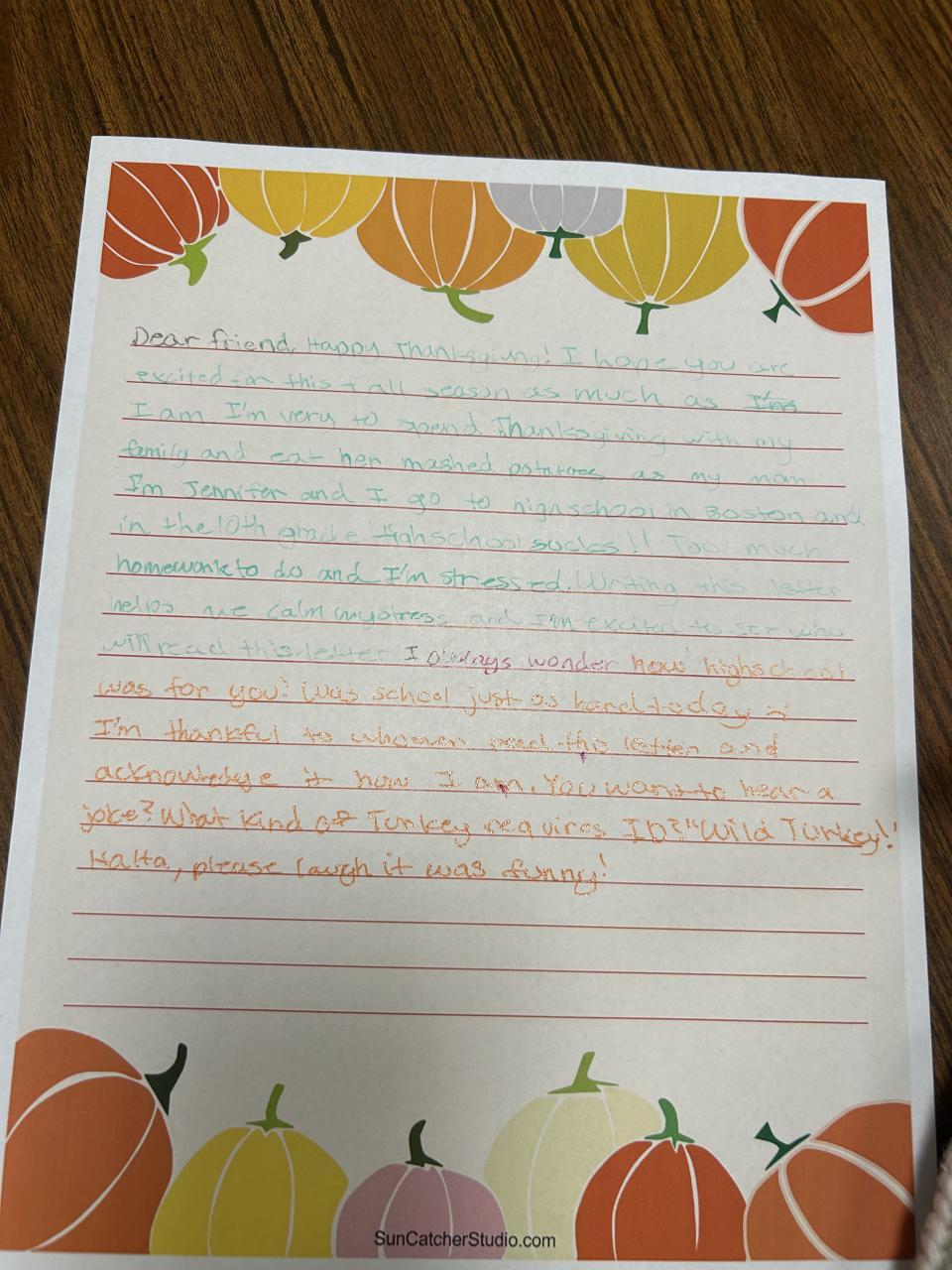 Thanksgiving Letter Writing