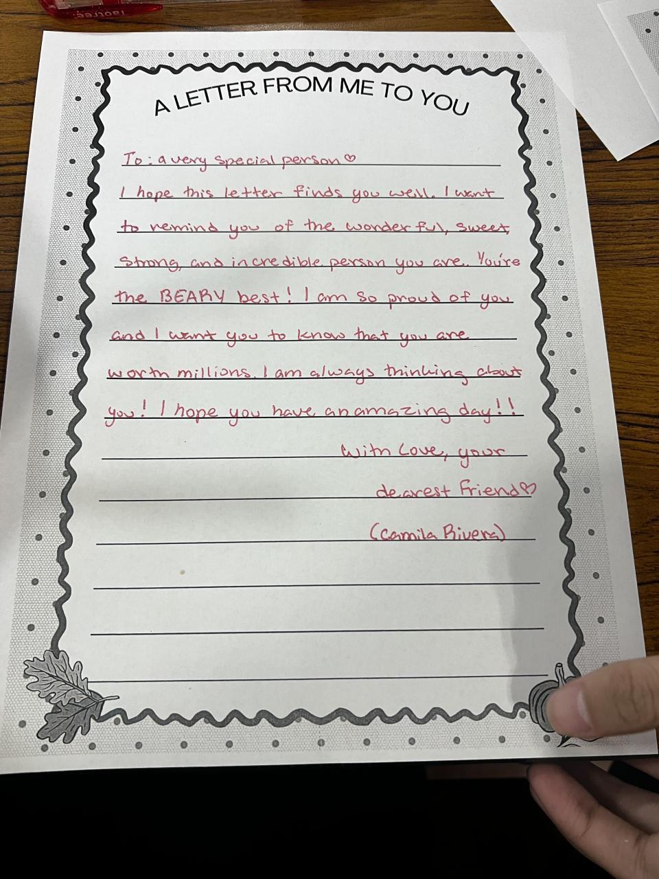 Sophomore Fall into OB PRIDE Letter Writing Event