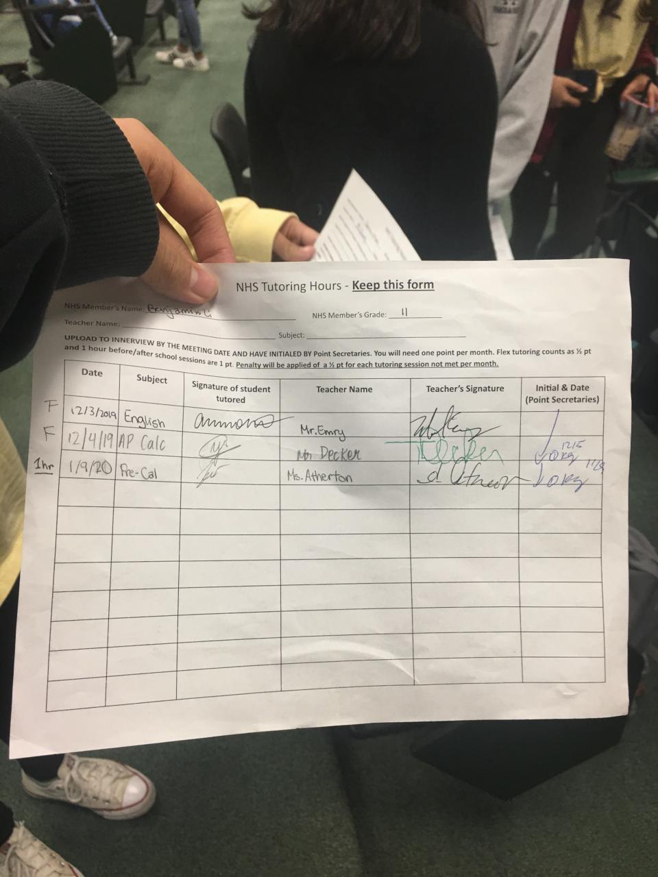 2019-2020 January Tutoring Requirement