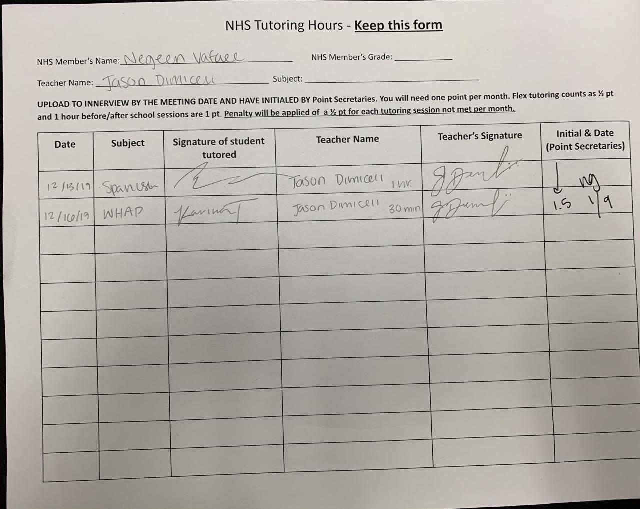 2019-2020 January Tutoring Requirement