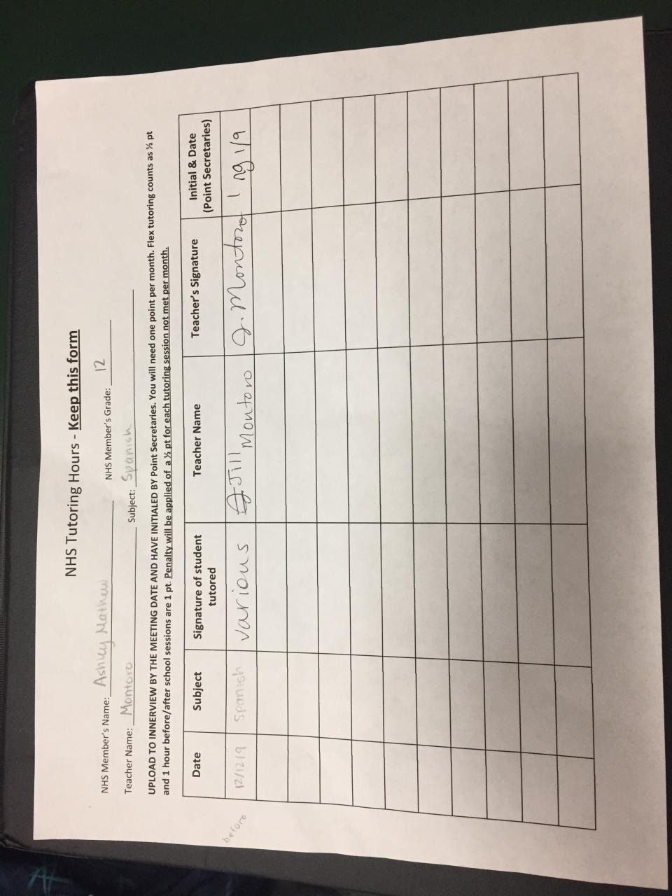 2019-2020 January Tutoring Requirement