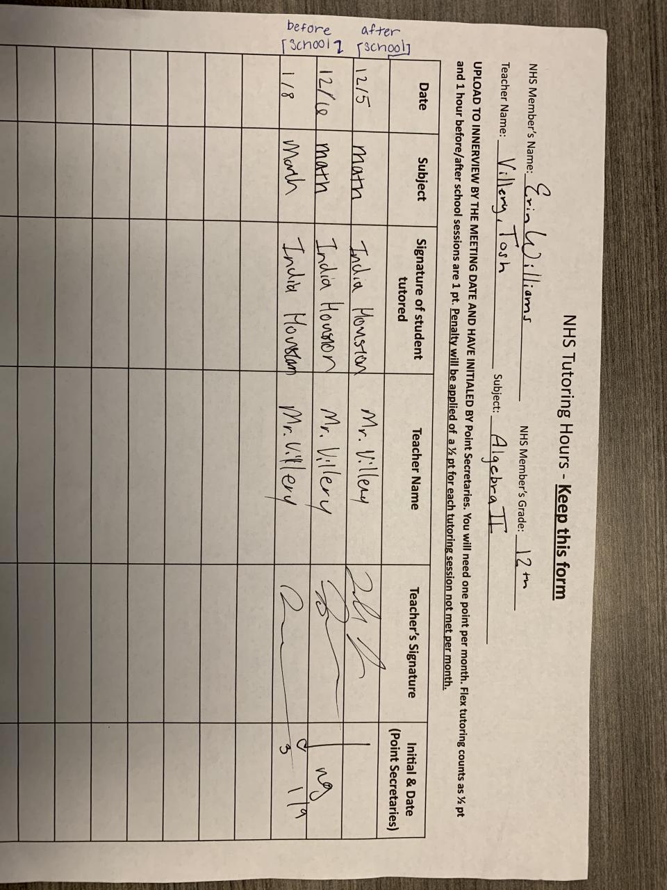2019-2020 January Tutoring Requirement