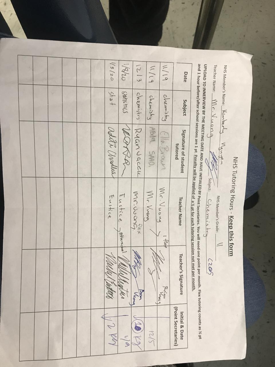 2019-2020 January Tutoring Requirement