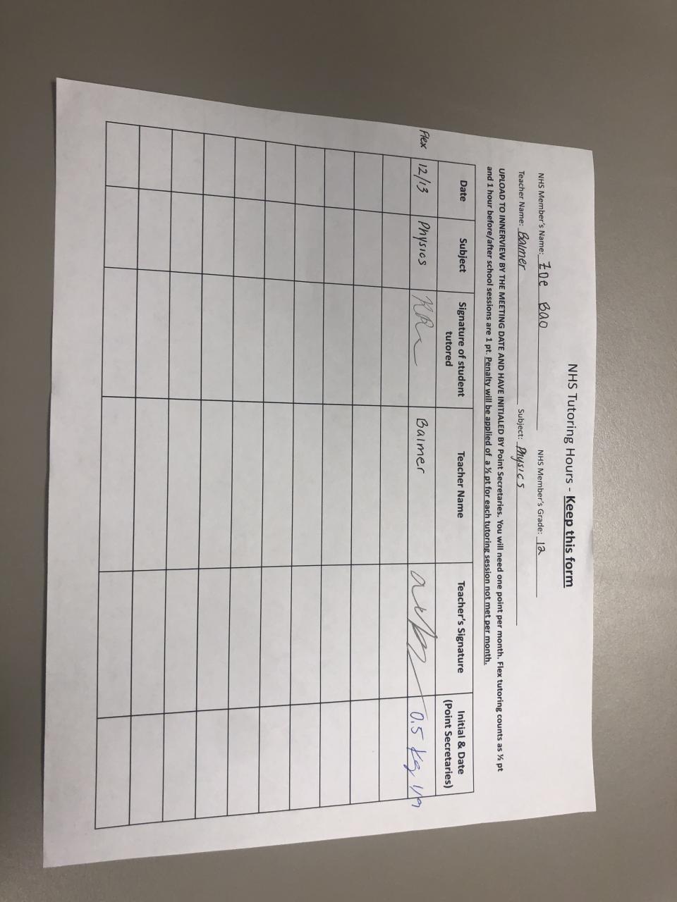 2019-2020 January Tutoring Requirement