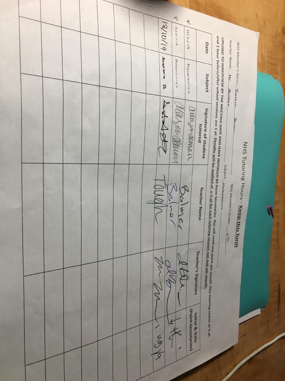 2019-2020 January Tutoring Requirement
