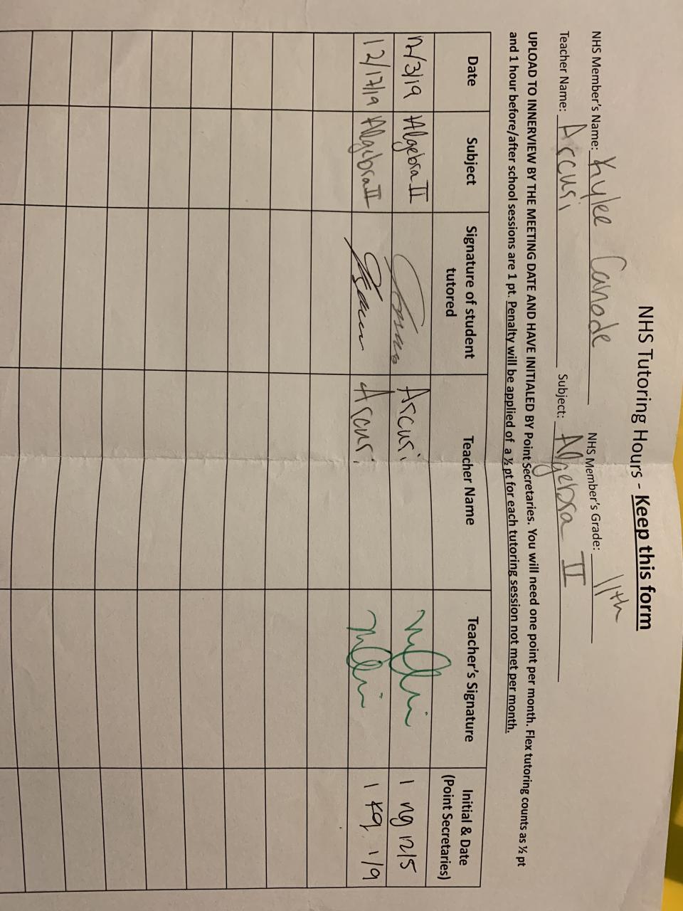 2019-2020 January Tutoring Requirement