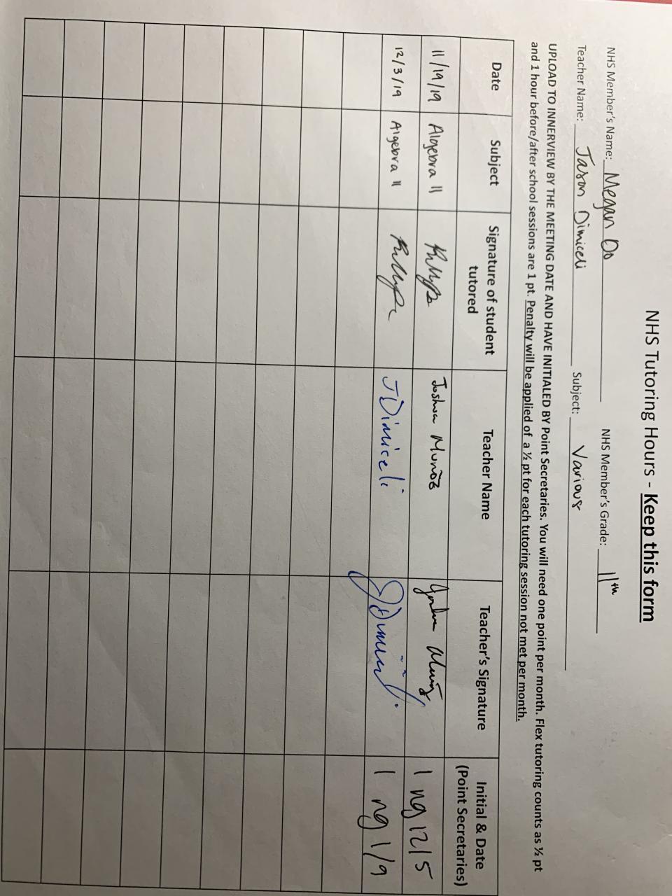 2019-2020 January Tutoring Requirement