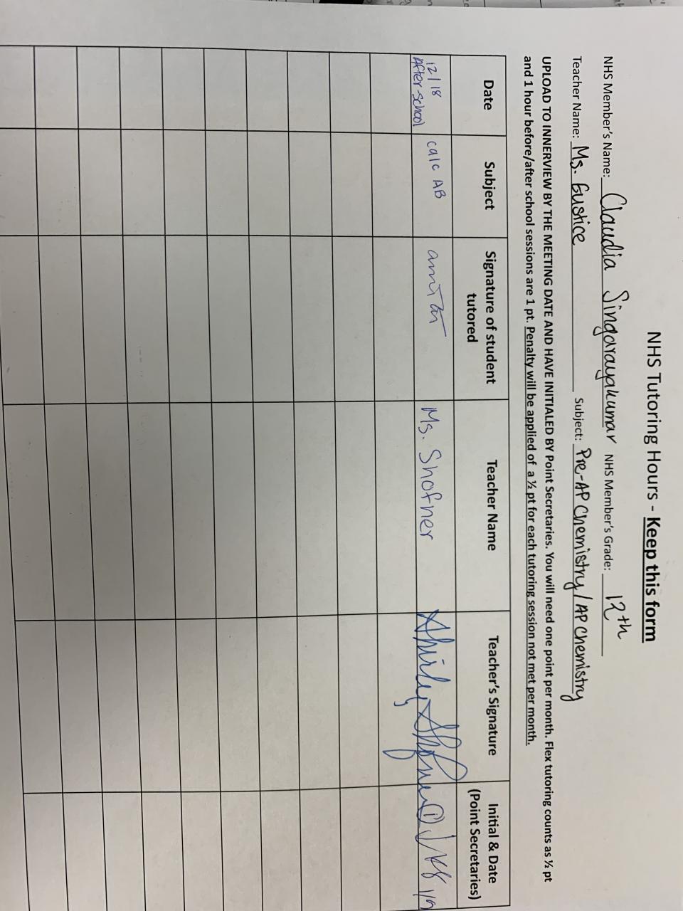 2019-2020 January Tutoring Requirement