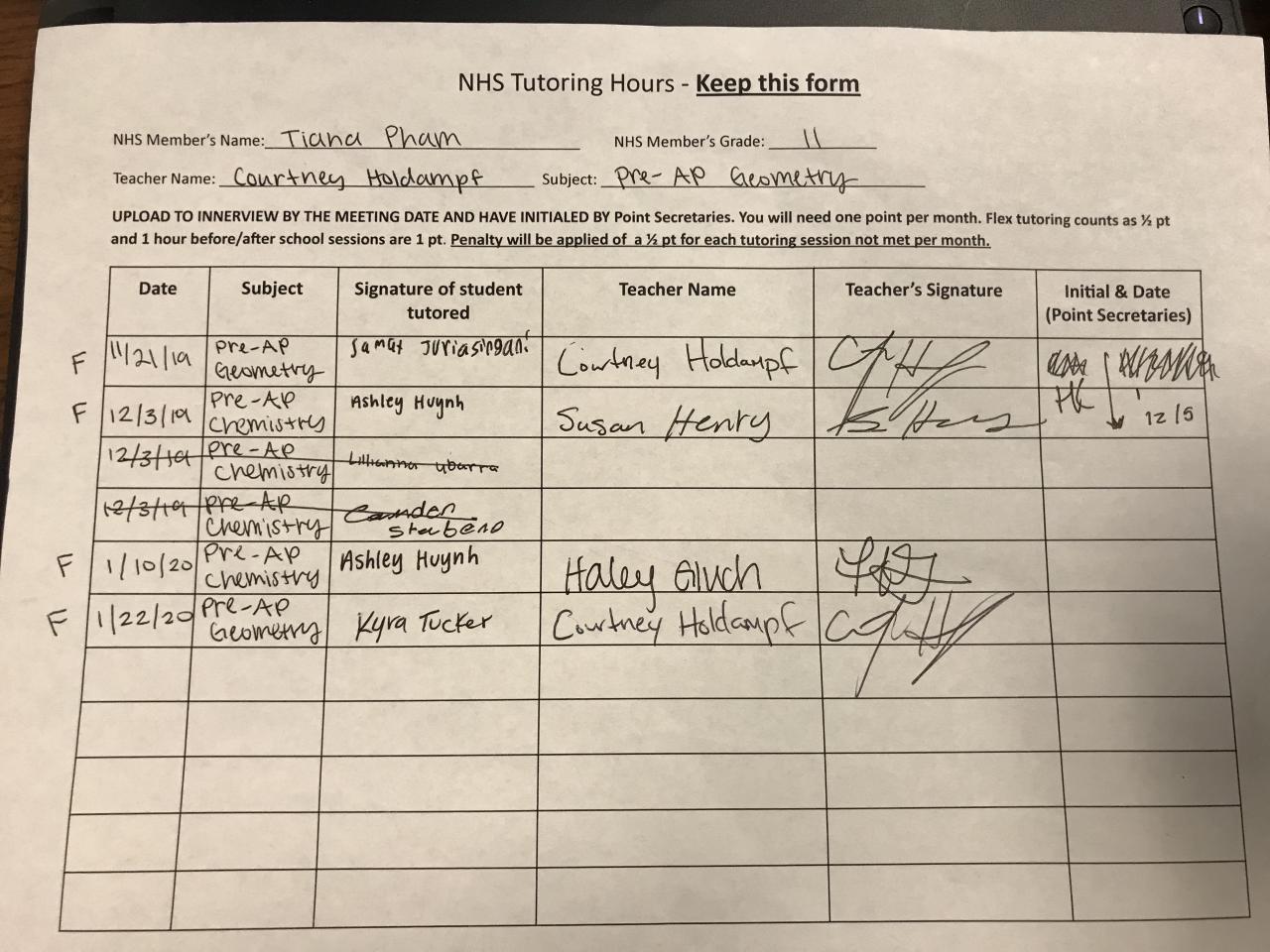 2019-2020 January Tutoring Requirement