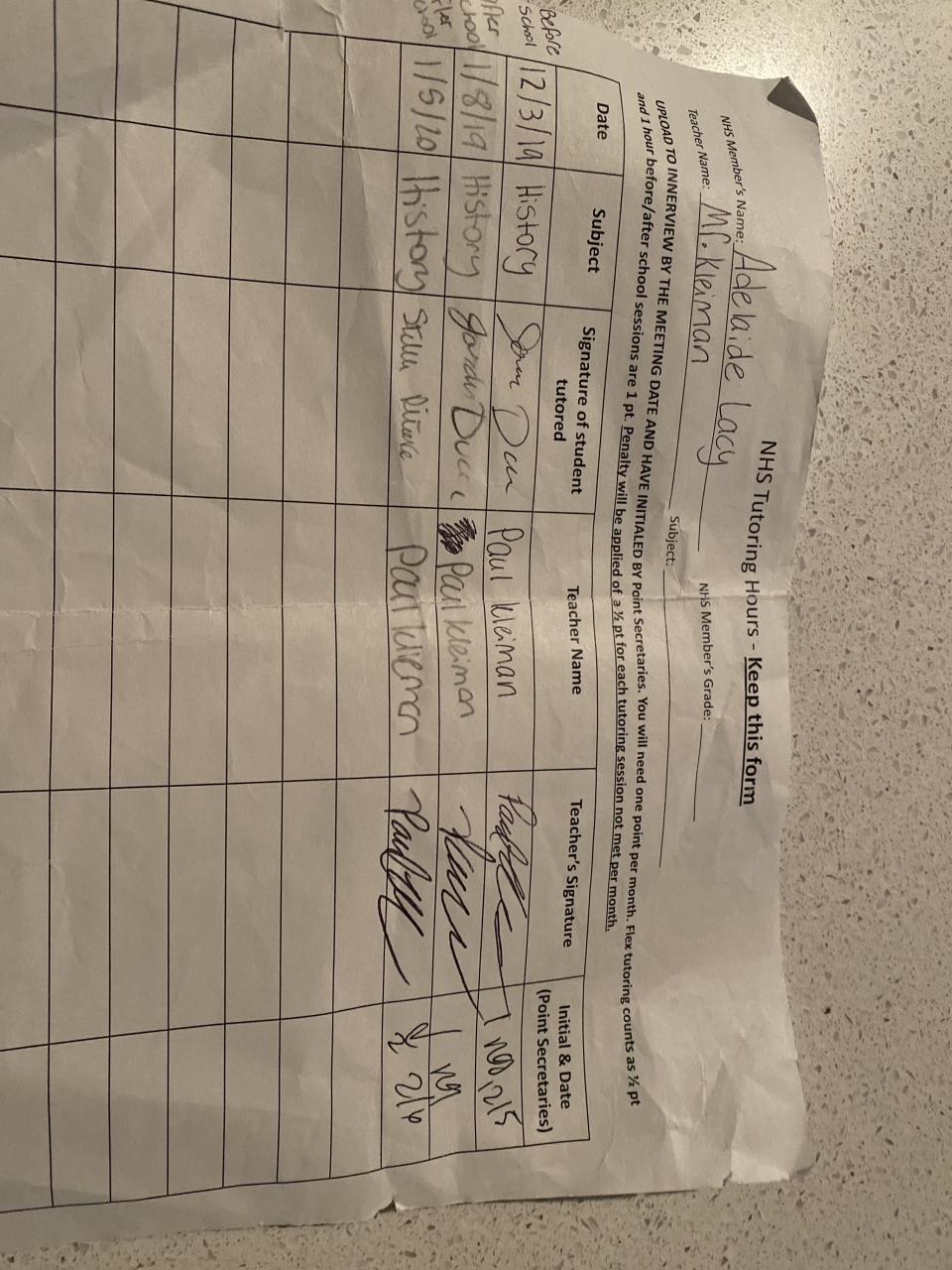 2019-2020 January Tutoring Requirement