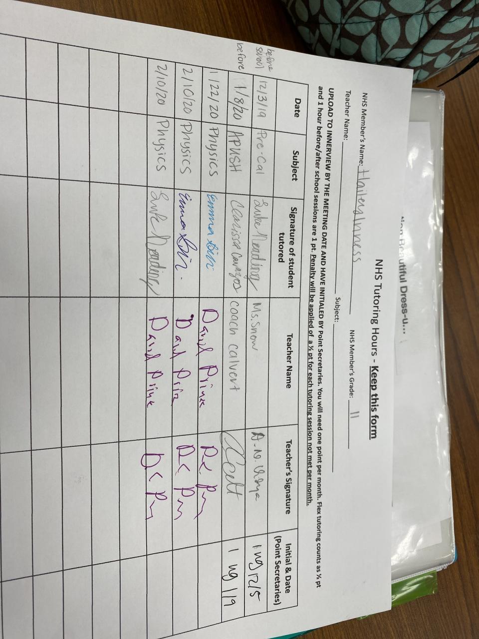 2019-2020 January Tutoring Requirement