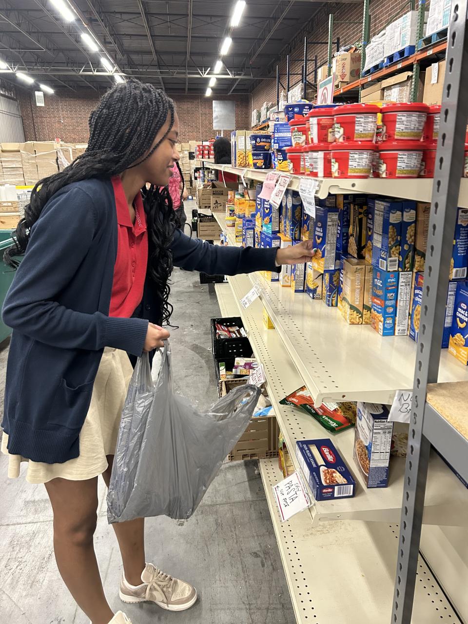 I learned to provide for those who are less fortunate than me, and I also learned more about how the donations of food works, and how to organize things to benefit others.