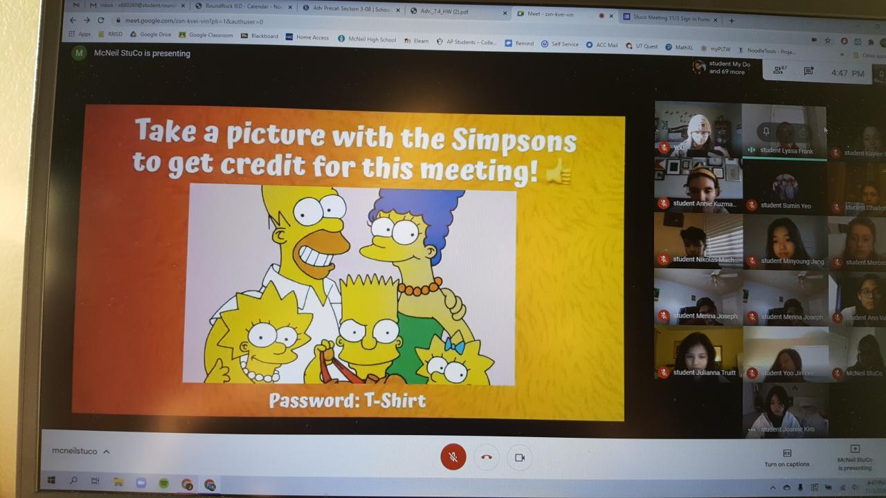 11/3 StuCo Mtg PM - on Google Meets - join code: mcneilstuco