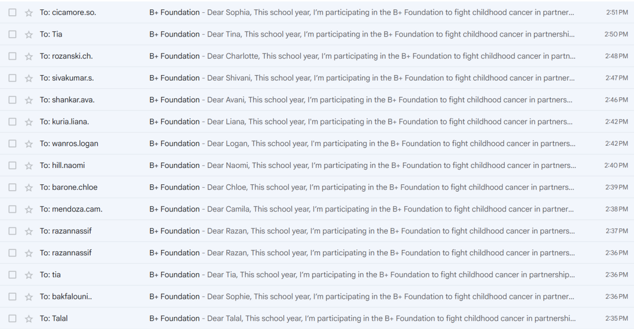 Sending Emails for B+