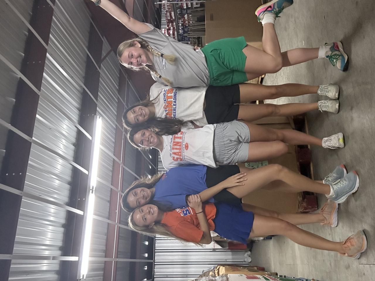 Pack food bags at Catholic Charities