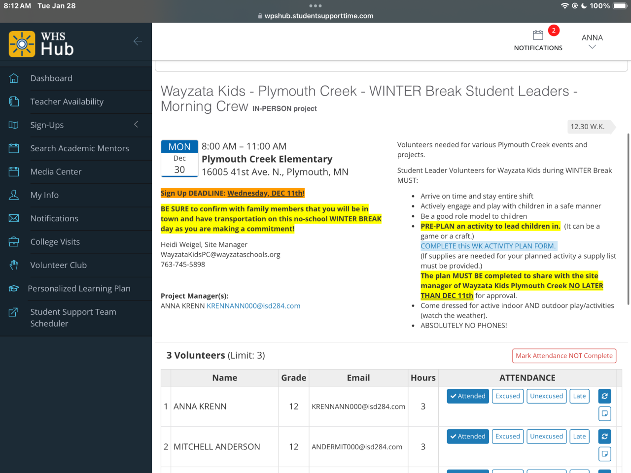 Volunteer Club of Wayzata High School