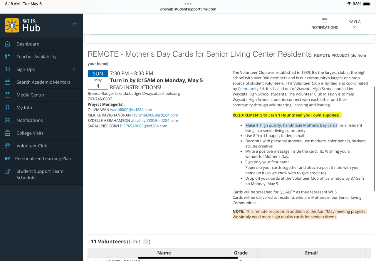 Volunteer Club of Wayzata High School