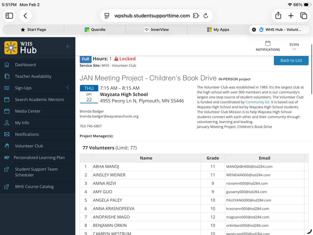 Volunteer Club of Wayzata High School