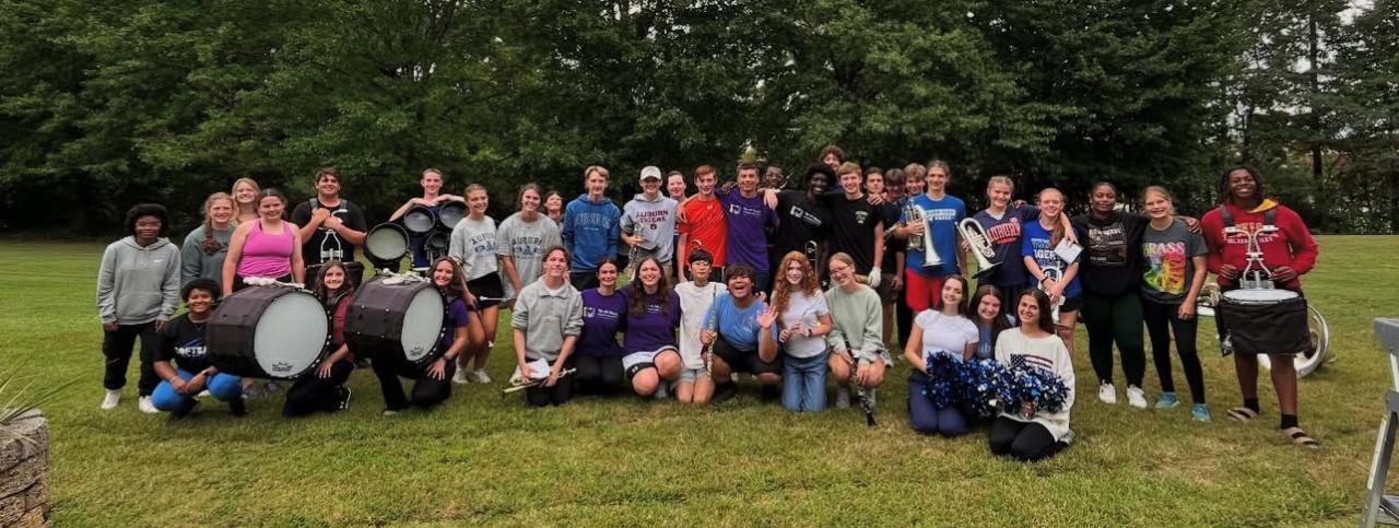 Pep band play at Monarch Estates